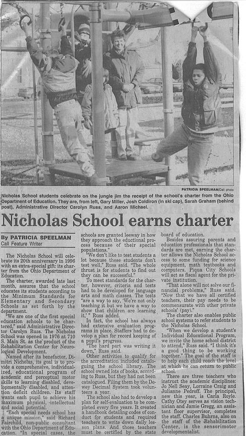 In 1976, the dream to have a school where all children could succeed became a reality. Nicholas School, a product of the Rehab Center, began serving special needs children. The school is a state chartered K-8 Special Needs school.